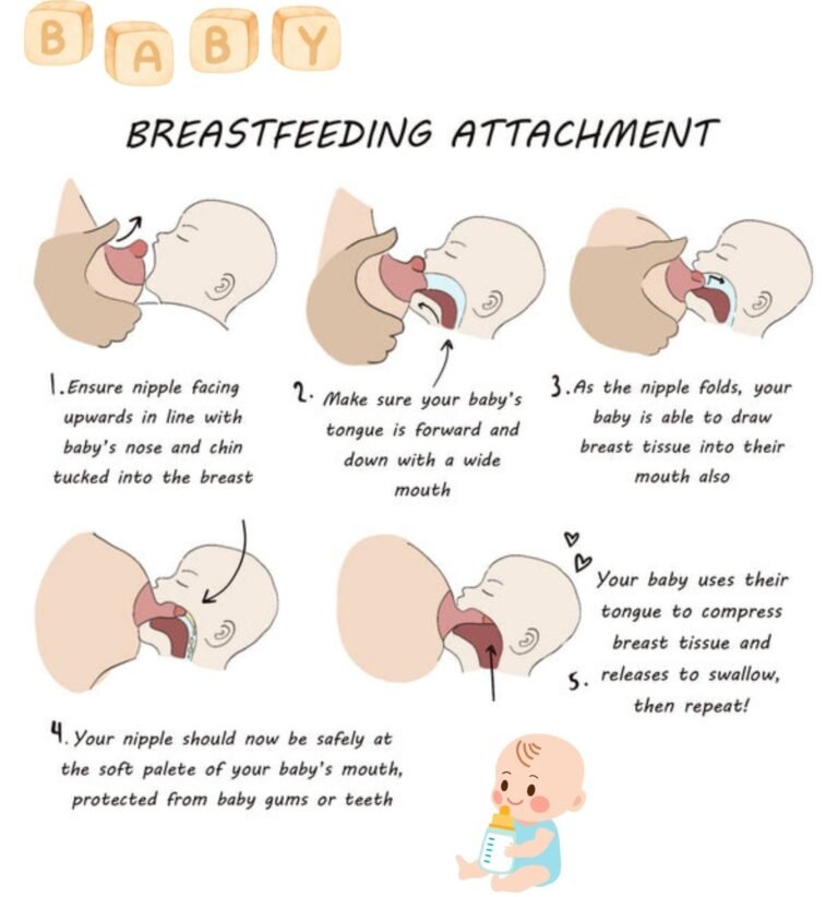 Ensure the baby’s mouth is wide open and covers most of the areola (the dark area around the nipple) for effective sucking and to prevent pain.